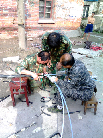 針對自然村供電變壓器容量小、供電負荷大的情況,機電科全面組織對謝二北村增設一臺變壓器,面對運輸、起吊等多種困難因素,大家毫不退宿,面對炎熱的夏天,早上6點(diǎn)就奔赴施工現場(chǎng),各自分工,先是將400多米電纜線(xiàn)全部敷設完畢,身材靈活的師傅帶上保險繩爬上桿子又將電纜吊掛好;其他師傅進(jìn)行做線(xiàn)頭,又是拿刀割電纜皮,又是拿火烤絕緣護具,一個(gè)線(xiàn)頭做下來(lái)都要一個(gè)小時(shí),衣服都被汗水濕透了。隨著(zhù)變壓器的運輸到位,主要工作就是上架安裝,大家齊心協(xié)力,將一噸多重的變壓器起吊到離地面3米高的架線(xiàn)桿上,并牢牢的固定在架子上,然后將事先做好的線(xiàn)頭接好,此時(shí)已經(jīng)到了正午,此時(shí)氣度高達攝氏37度,頂著(zhù)烈日,大家的衣服褲子都已經(jīng)全部濕透,送電正常后,只見(jiàn)每個(gè)人臉上都露出了欣慰的笑容。